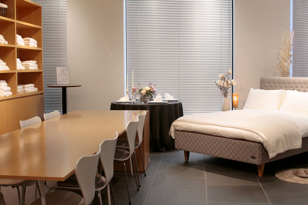 シーツ、ピロー、ウェア、タオル、テーブルクロスなどホテルリネンの生地を、豊富なバリエーションから実際に手に取り、心ゆくまで感触を確かめ、お選びいただけます。また、思い描くイメージを細かな点までお聞きして、コーディネートをご提案。具体的にシミュレーションしていただけます。どうぞお気軽にお越しください。